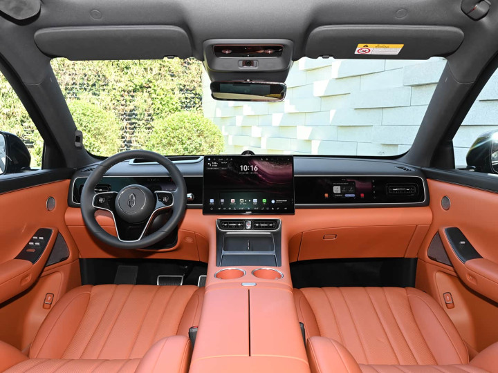 进入车内,内饰延续华为家族式极简设计,26 英寸 WHUD 与 16.1 英寸 3K 中控屏组成双联屏系统,操作流畅度比老款提升 30%。材质上采用软质搪塑 + 木纹饰板组合,Ultra 版专属的 “深空灰” 配色搭配金属踏板,营造出轻奢氛围。空间表现堪称同级标杆:5 座版后备厢常规容积达957L,放倒二排后扩展至 2252L,地板下 107L 隐藏储物槽可存放露营装备;6座版采用 2+2+2 布局,二排右侧零重力座椅支持 12 档角度调节,170cm 乘客腿部可轻松放下小桌板,第三排对 180cm 乘客也能提供一拳头部空间,满座时仍能容纳 4 个 20 英寸行李箱。Ultra 版独有 17.3 英寸后排娱乐屏,支持三指流转功能,中控内容可无缝滑至后排,家庭出行时实用性拉满。